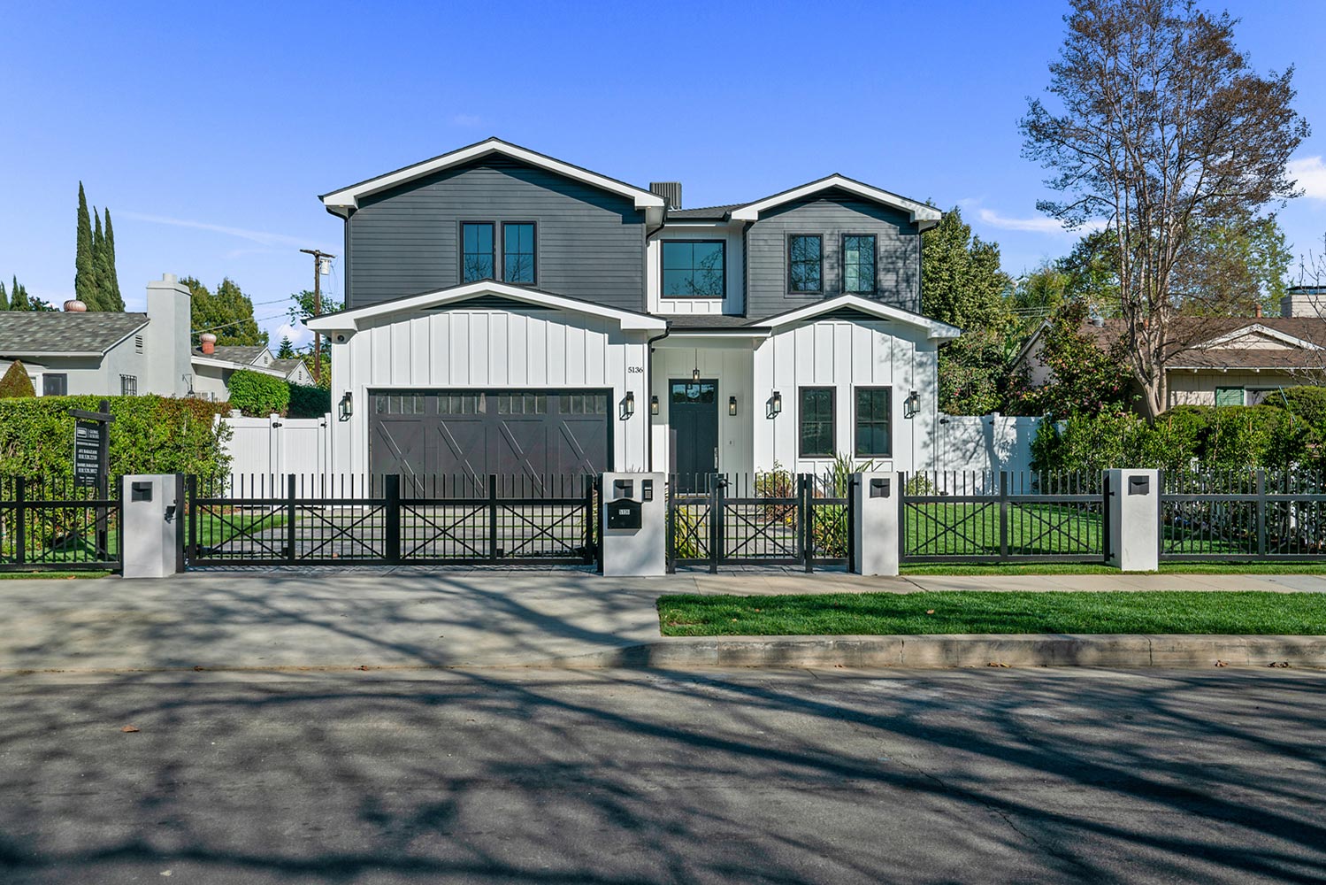 Charming new, traditional home on a gated property in prime Sherman Oaks neighborhood. Featuring 5 BR – 5.5 BA in an open floorplan with approx. 3,532 sq. ft. on an almost 7,500 sq. ft. lot. The gourmet kitchen features stainless-steel appliances, Quartz counters, walk-in pantry, large island with bar seating, and bright dining area. Kitchen opens to family room with custom built-ins, fireplace, and pocket sliding doors to covered patio. Backyard features a large grassy area, BBQ area with bar seating, pool/spa with waterfall, and outdoor pool shower. Master suite features pitched ceiling with beam design, accent wall, walk-in closet, and spacious master bath with custom tile work and vanity. Home is completed by entertainer and designer details such as beam designs, crown molding, wainscoting, surround sound speakers, Control 4 smart home, and security system with alarm and cameras.